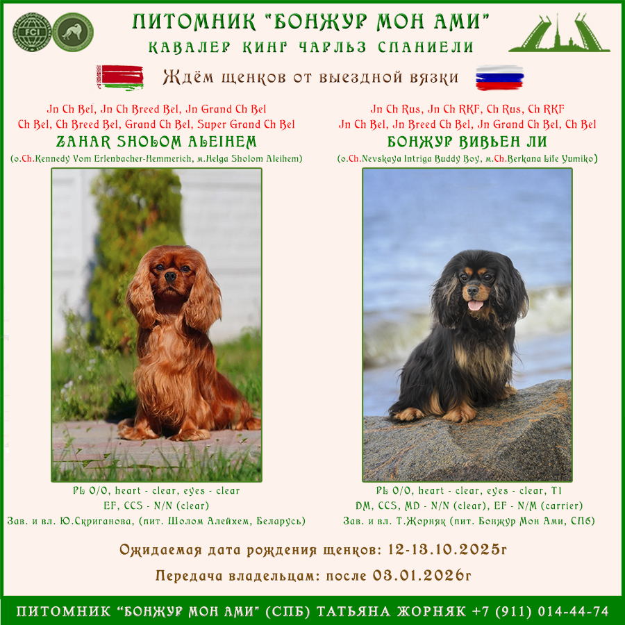 ожидается рождение щенков кавалер кинг чарльз спаниеля от выездной вязки.
